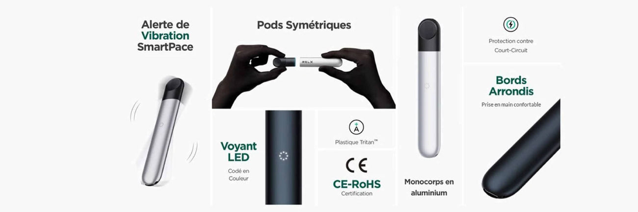 - 1 Essentiel RELX + 1 cable UCB C + Manuel d'utilisation